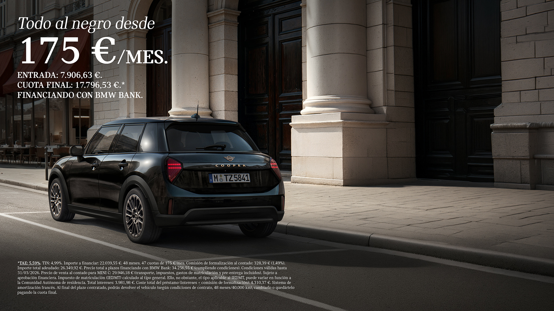 El negro siempre sienta bien. Consigue el estilo que adoras a un precio aún más atractivo con la configuración MINI Blackyard. Aprovecha las condiciones especiales en unidades limitadas con entrega inmediata para esta configuración y con descuento de hasta 1.770 €*.